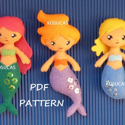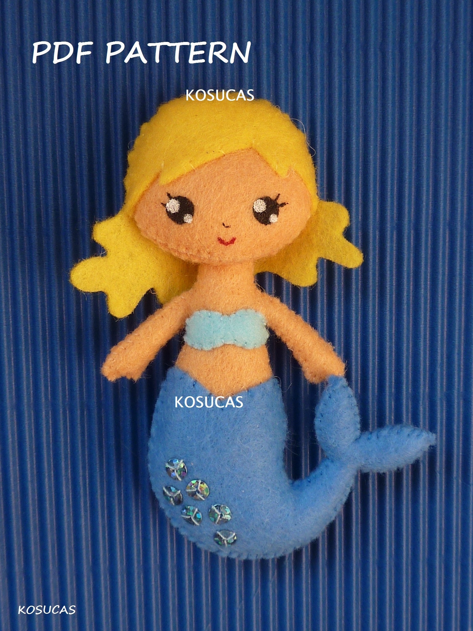 Pdf Sewing Pattern To Make A Small Mermaids In Felt Etsy
