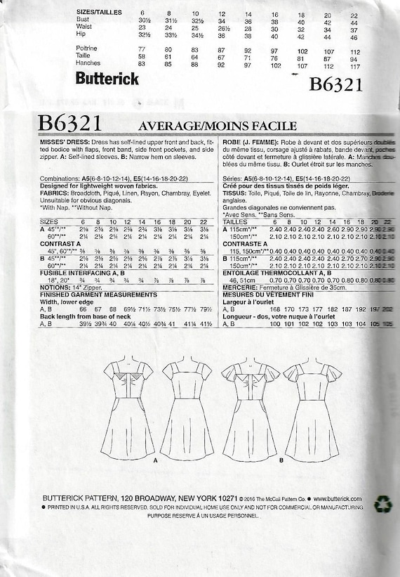 Butterick Sewing Pattern B6621 Misses Dress Etsy Schweiz